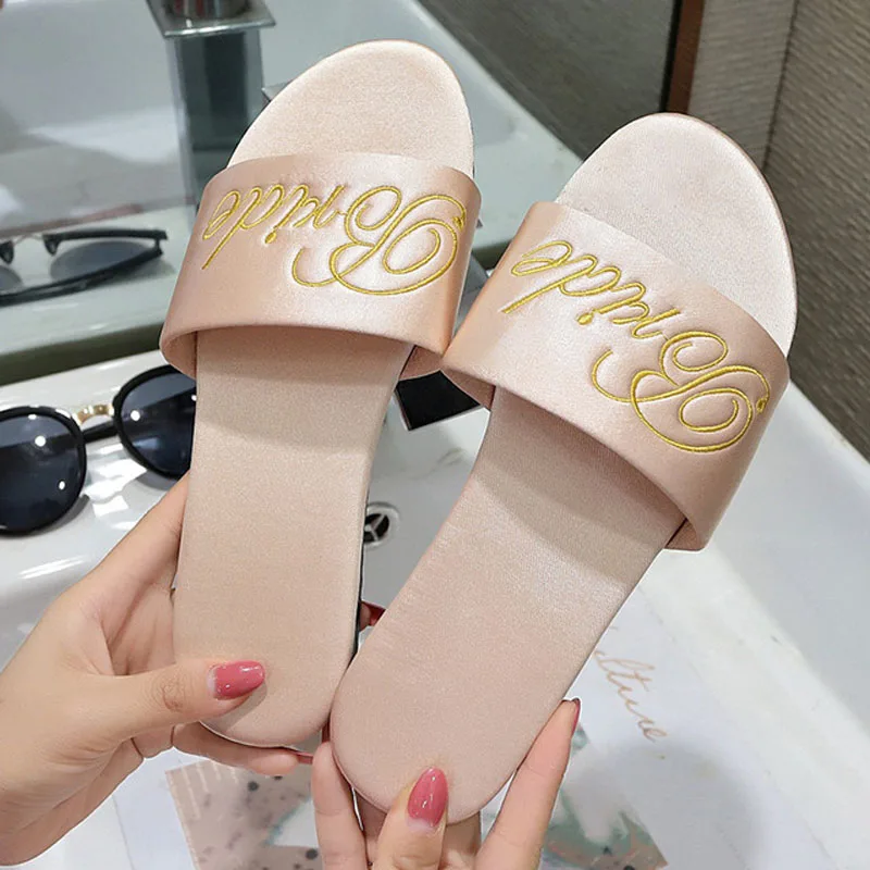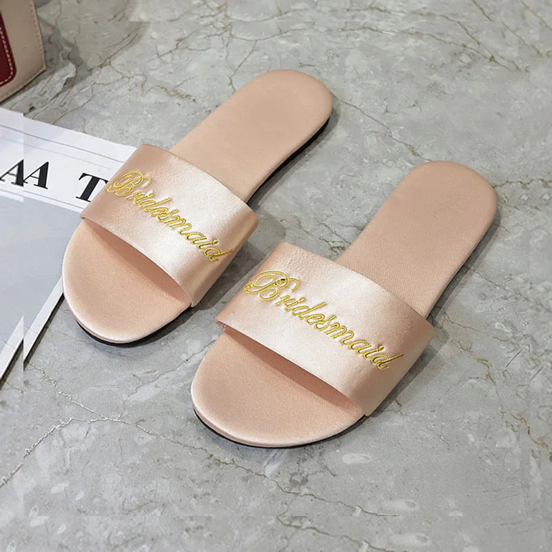Unique Embroidery Satin Bridesmaid gift Bride Slippers for wedding hen bachelorette party gifts 1pa