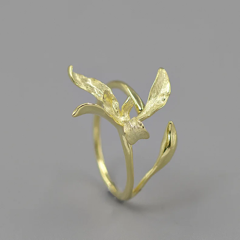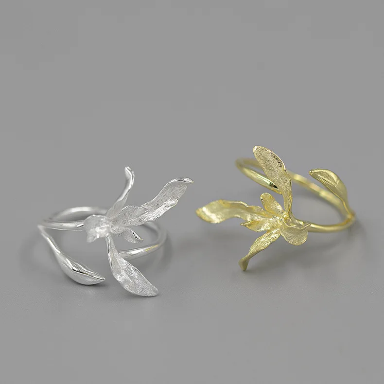 ORIGINAL INATURE New Fashion Elegant 925 Sterling Silver Orchid Flower Rings for Women Adjustable Opening Ri